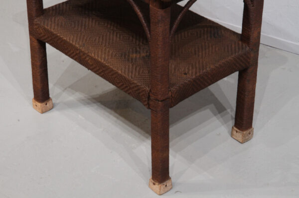 細いペーパーコードのようなものを編み込んで釘止めで貼り付けてあります。