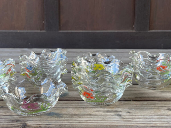 竹籠や、縁が透明で綺麗な金魚鉢も入荷しています。