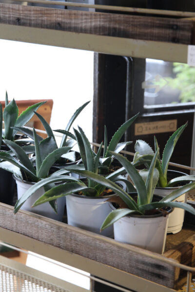 久しぶりにアガベの鉢植えも販売しています! 1鉢1,100円。