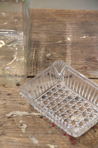 花器にもぴったりな雰囲気あるガラス(2,200円)、型ガラスの可愛らしい角皿(3,300円)