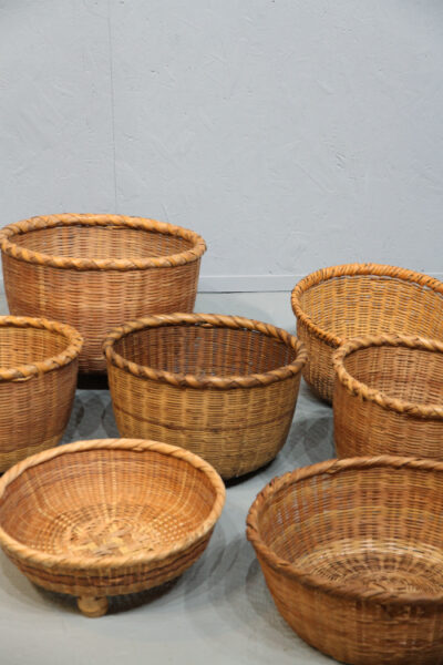 ディスプレイにも素敵な浅めの籠からお探しの方も多い手み、使い良い丸かごもたくさん入っています!
