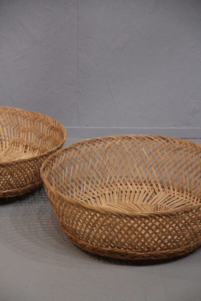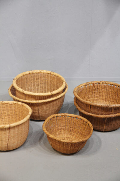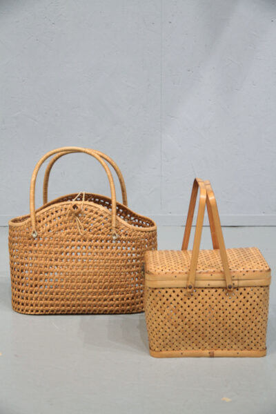 細い竹で編まれた脱衣籠、とてもきれいです。