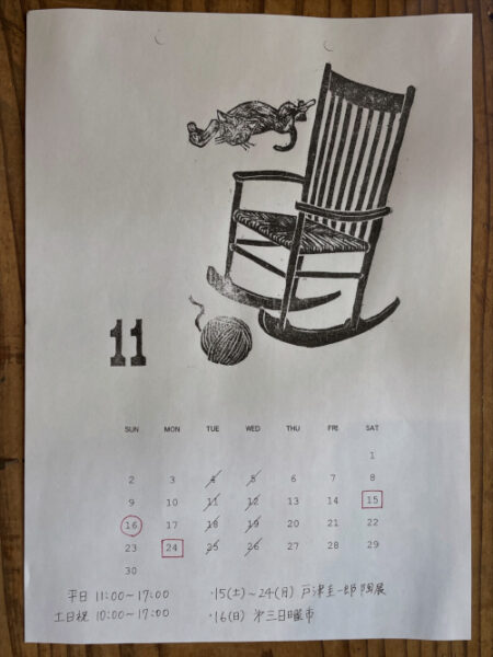 11月は通常営業、毎週火曜日・水曜日が定休日